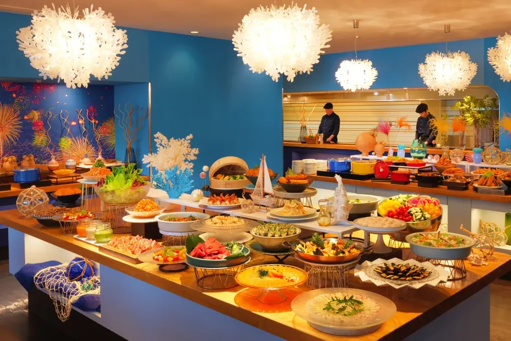 リニューアル後は、店内のライブキッチンで目の前で仕上げる調理や、参加者自身が楽しめるスイーツ作りのコーナーなど、従来のビュッフェに加えて〈体験〉を重視した構成へと進化します。リゾート全体のコンセプトである“遊び心溢れる滞在体験”を、夕食の時間でも具現化する動きです。