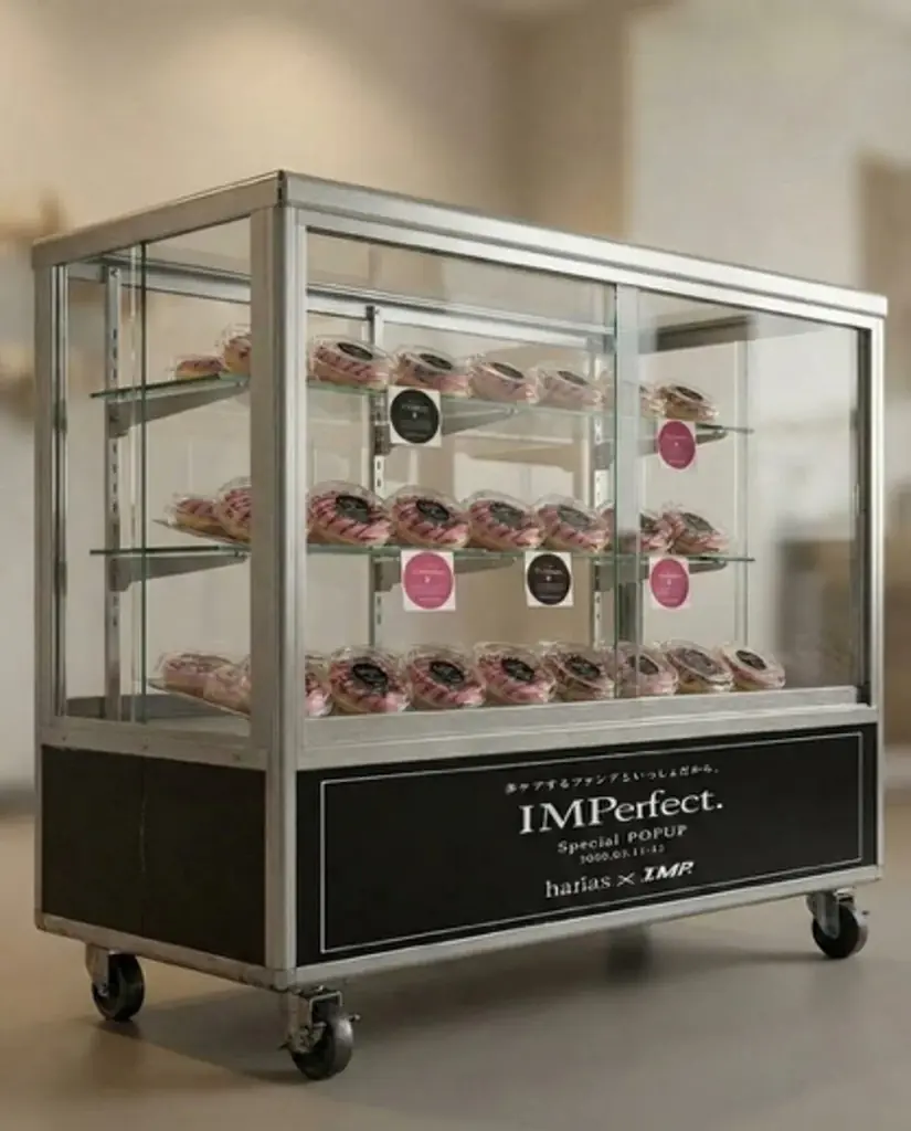 会場でSNSキャンペーンに参加すると、IMP.をイメージしたカラーとキャラメル風味の特製ドーナツが配布されます。配布数には限りがあるため、無くなり次第終了となります。SNSキャンペーンの詳細は会場内で案内されます。