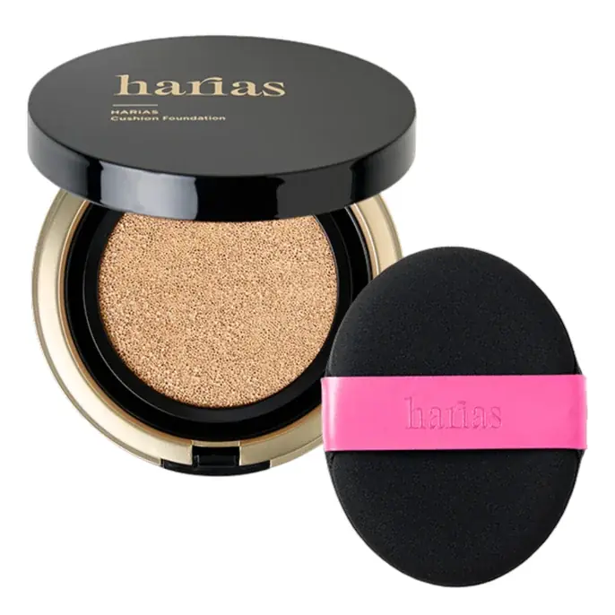 | HARIAS薬用クッションファンデーション | 15g(約1か月分) | 3,520円 | 4色(ベージュ・オークル・ニュートラル・アンバー)、ピンクパフ付、W有効成分配合、日本初の独自配合設計、24時間キープ※4 |