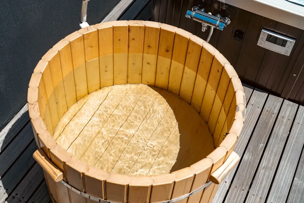 全棟に設置されたプライベートサウナと水風呂は、オーシャンビューのウッドデッキでの外気浴と組み合わせることで、海風と波音を伴う独特の「ととのい体験」を提供します。セルフロウリュが可能な仕様のため、自分たちのペースでサウナを愉しめます。