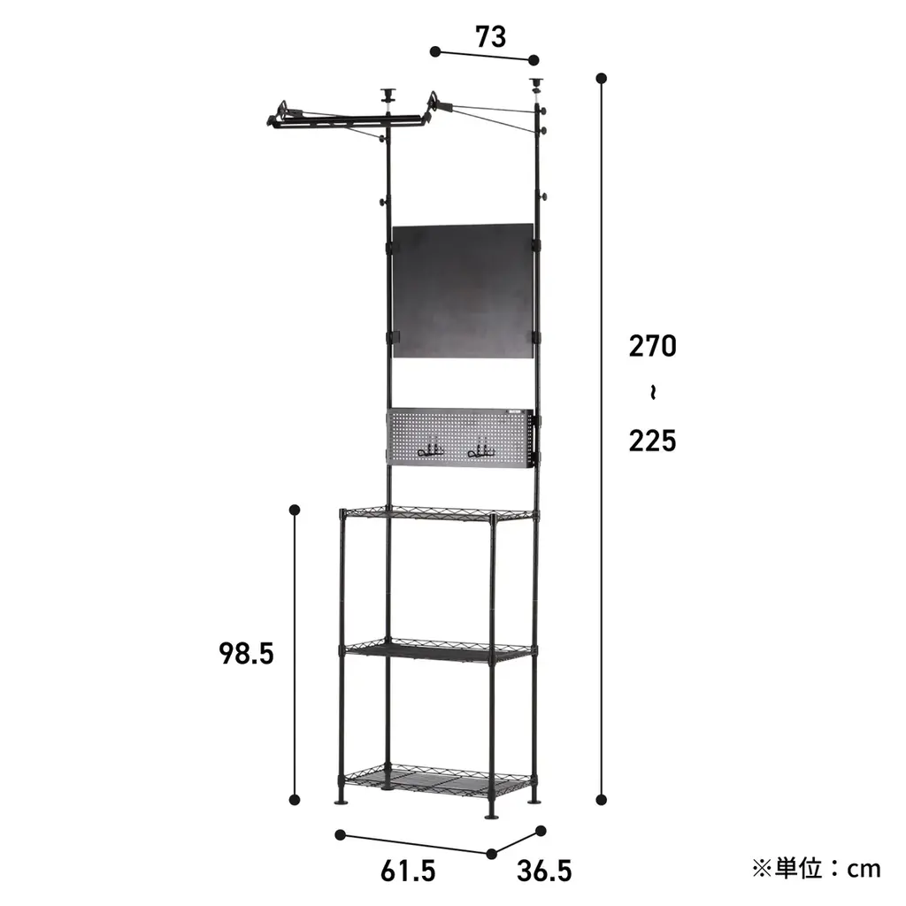 | サイズ | 幅 61.5cm × 奥行 73cm × 高さ 225cm(225〜270cm) |