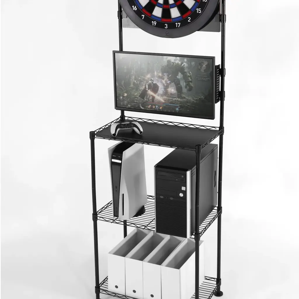 付属のフックや結束バンドを利用することで、配線の取り回しも簡素化され、オンライン対戦時の安定した視聴・操作環境を確保します。スチール素材は耐久性に優れるため、長期間の使用にも耐えられる設計です。