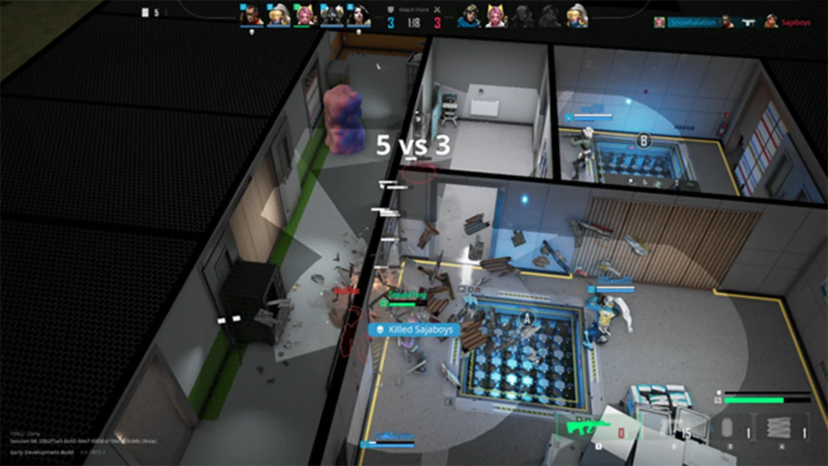 屋内戦闘を主軸に据えた、5対5トップダウンの新しいPvP体験