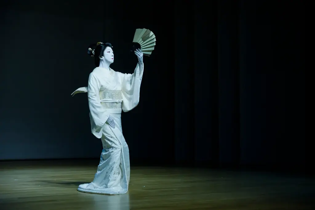 続いて披露された「残月」では、歌舞伎の衣裳に身を包んだ坂東玉三郎が、儚さと静謐さを帯びた舞を見せた。刻々と移ろう感情表現と舞台の静寂が一体となり、来場者は息をのむように舞台を見つめ、フィナーレでは音のない喝采とも言える静寂の余韻が残った。