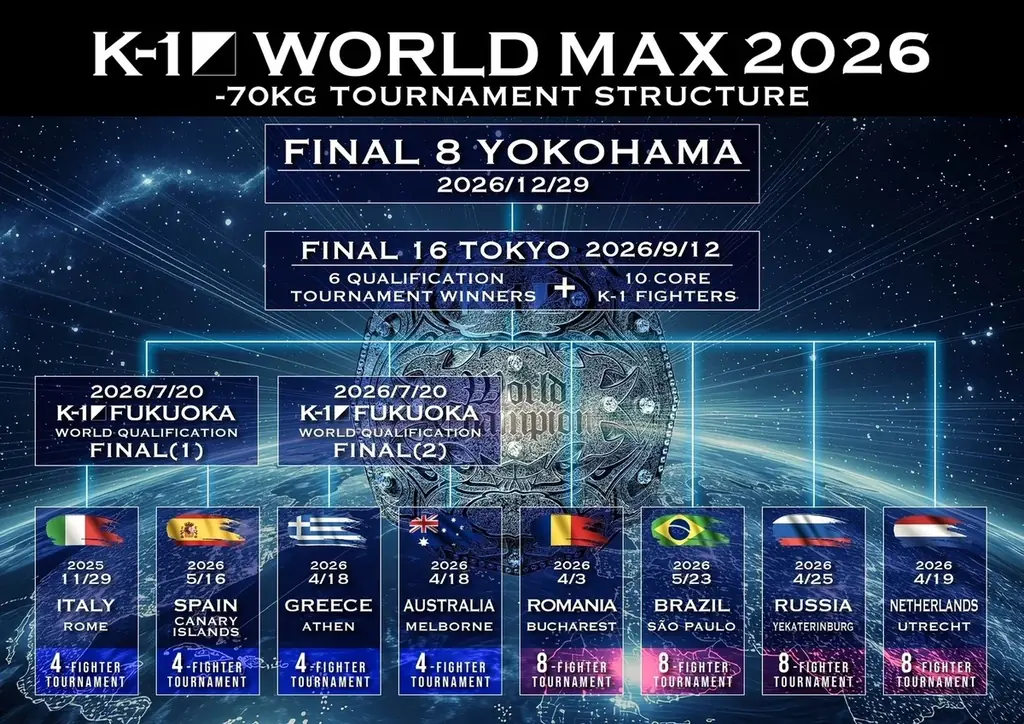「K-1 WORLD MAX -70kg 世界最強トーナメント」は2024年にストーヤン・コプリヴレンスキーが優勝し、2025年はジョナス・サルシチャが優勝するなど連続して開催されてきた。2026年も実施が決定し、新たに世界規模の予選ネットワークを構築することで、より国際色と競技レベルを高める狙いがある。