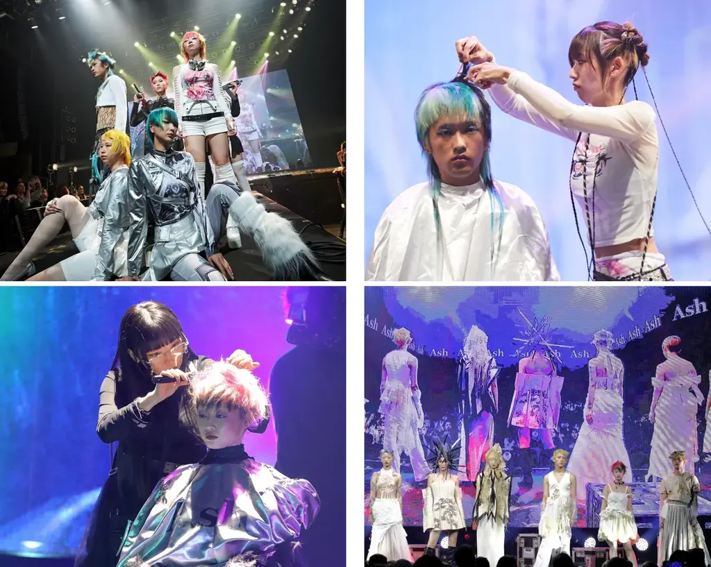 ヘアショーは3種類のステージで構成されます。いずれもAshの表現力やトレンドへの対応力を間近で確認できる内容です。ステージは単なるショーにとどまらず、サロンでの表現や技術の応用を見据えた構成となっています。
