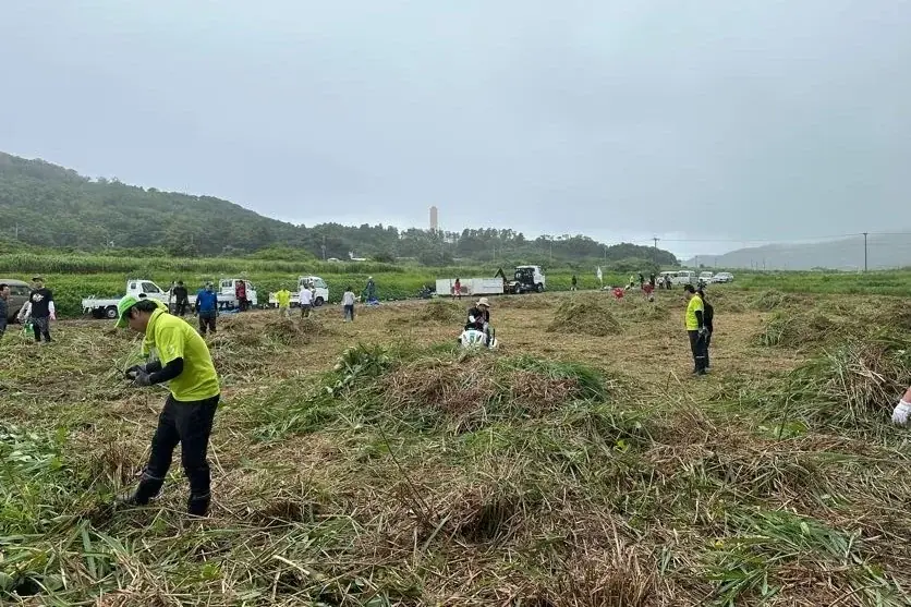 開墾作業には地域住民や「草刈りツーリズムプロジェクト」の参加者も協力し、2メートルを超える雑草の刈取りと回収が行われました。作業は機械と人手を組み合わせて短時間で整備され、新たな農地として再生されました。