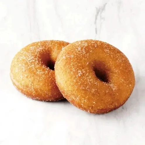 価格:130円(税込140.40円)/販売エリア:全国(神奈川県の一部店舗を除く)。生地に混ぜる卵を増やしてコクと濃厚さを加えた、ふんわり食感のシュガードーナツです。揚げたての状態でグラニュー糖をまぶして提供します。