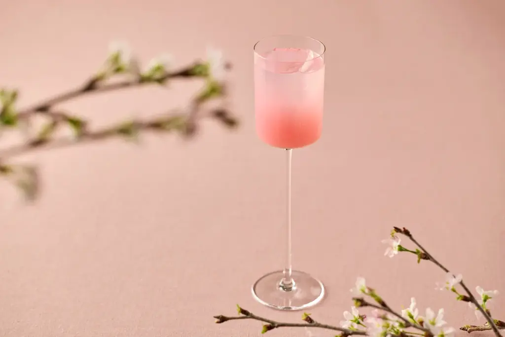 Printemps Rêverie(プランタン・レヴェリー)~春の夢心地~は桜餅をイメージしたモクテルです。美しいピンクのグラデーションを呈し、氷だし煎茶の旨み、玄米甘酒のまろやかさと繊細な塩味が余韻を織りなします。甘くシュワッとした味わいが春の気分に合う設計です。