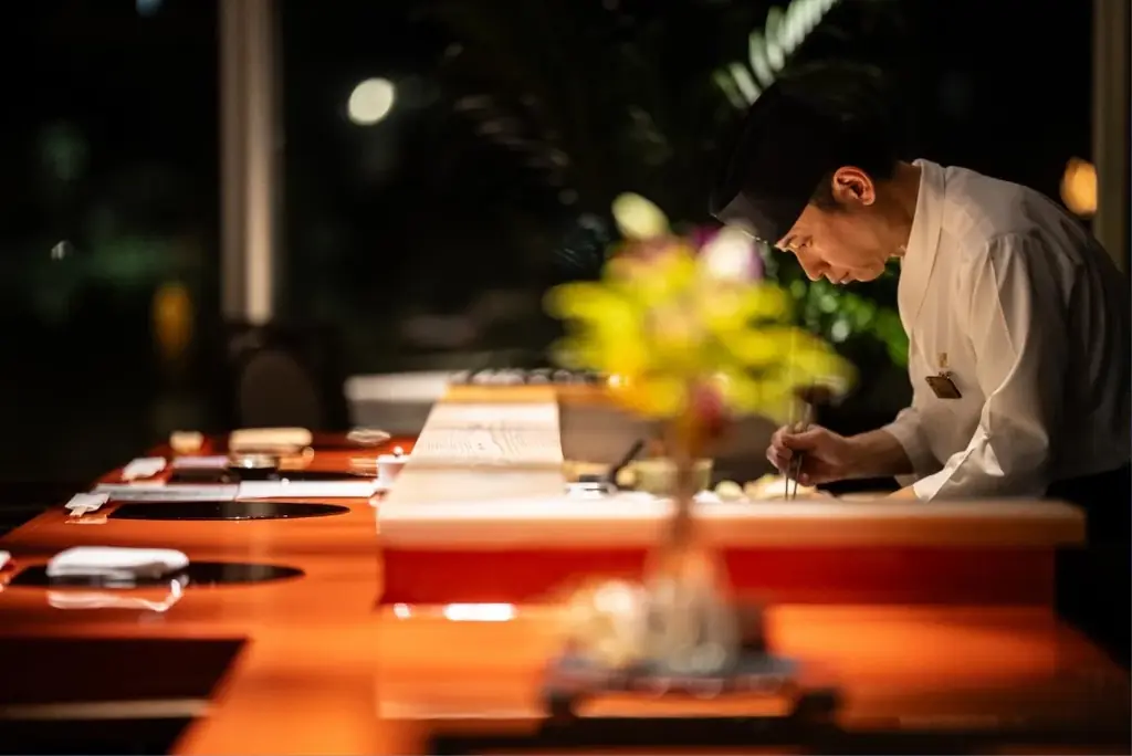 神奈川県横浜市出身。横浜・東京の鮨店で修業し江戸前鮨の技術を習得。2006年のホテル開業とともに沖縄へ。全国から取り寄せた魚介と沖縄食材を組み合わせ、江戸前と琉球の風土を調和させた鮨を追求しています。