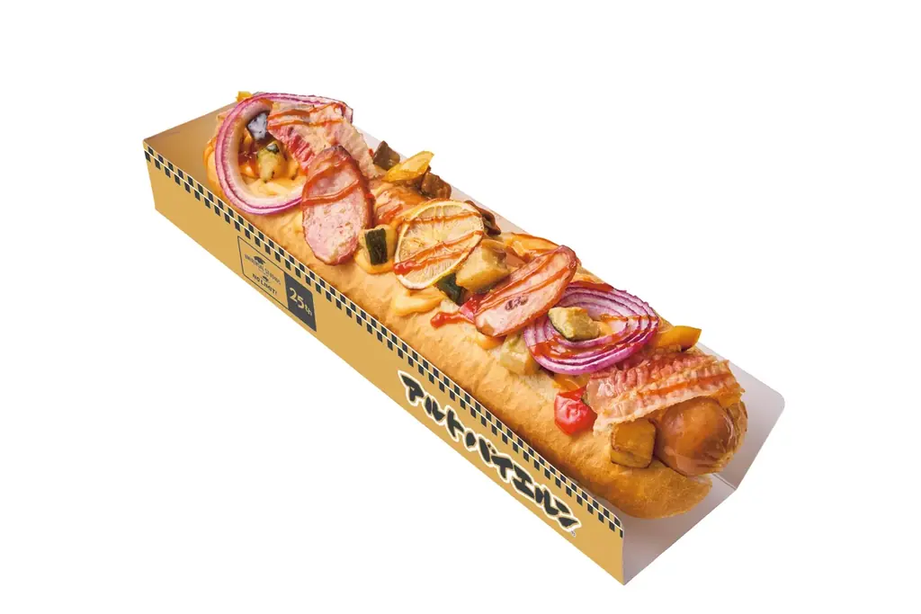 「アルトバイエルン・ドッグ ~ミート・モンスター~」は、35cm超えの超BIGサイズのアルトバイエルン®ソーセージを中心に据えたホットドッグです。ソーセージの他にもベーコン、そしてゴロゴロとした食感の野菜がトッピングされ、見た目・ボリュームともに“モンスター級”と称されるメニュー構成となっています。