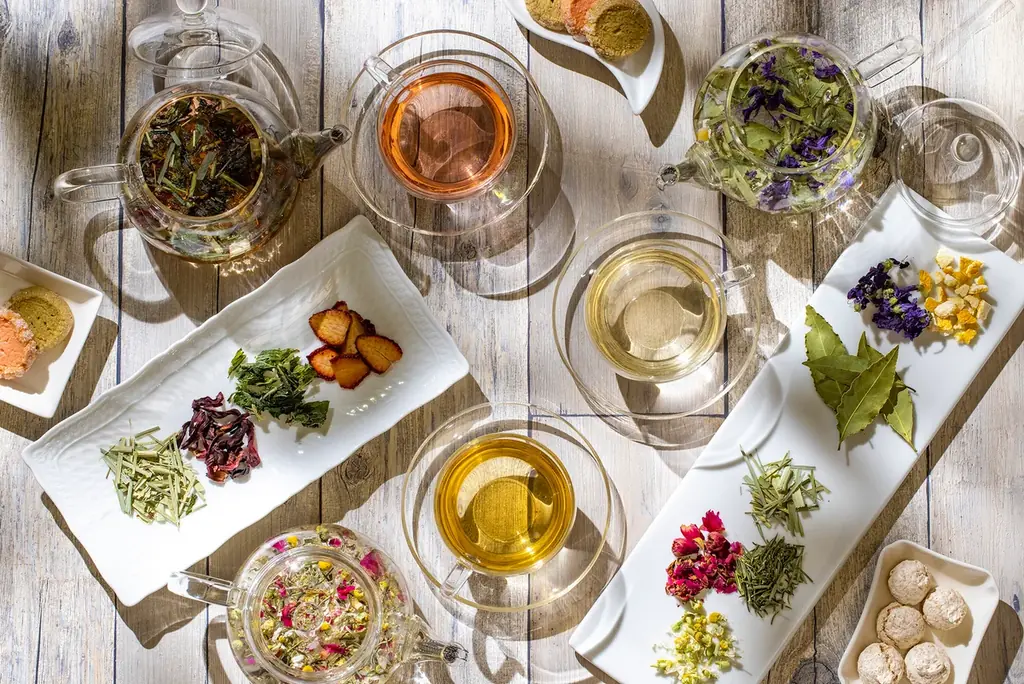 ハーブ農園ペザンの自然栽培ハーブを使用したホテルオリジナルハーブティー、TWG Teaのティーセレクションを含む全15種。フリーフローで提供。