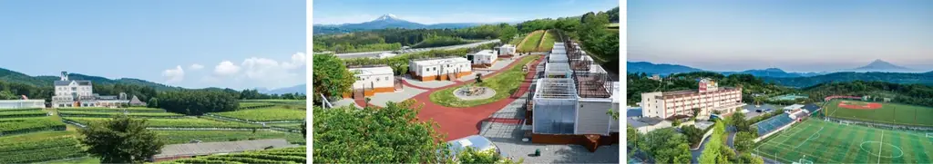 中伊豆ワイナリー シャトーT.Sは2000年に開業し、富士を背景に広がる10ヘクタールのぶどう畑を有しています。ワイン醸造だけでなく、レストラン、ホテル、グランピング、乗馬場などを有するリゾート施設として運営されています。2022年秋には愛犬と宿泊できるグランピング施設「中伊豆 EAST WINDS VILLAGE」も開業しています。