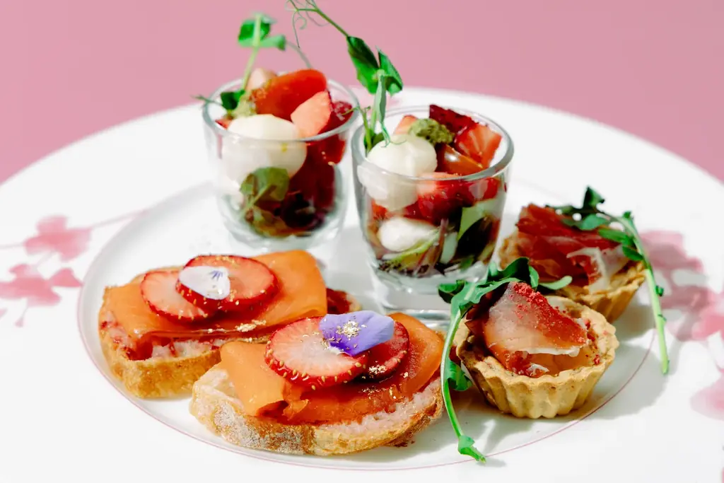 - ・カプレーゼやブルスケッタにいちごを使用し、チーズやサーモンと甘酸っぱさのハーモニーを演出