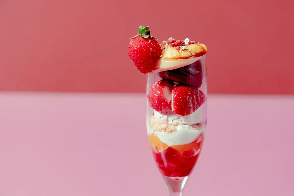 - ・ストロベリーカシスコンポートとレモンのジュレ:酸味がアクセントのグラスデザート
