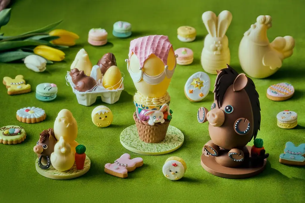 イースターの象徴であるバニーが気球に乗ったデザインと、2026年の干支である午(うま)をイメージしたデザインの2種類を用意。ミルクチョコレートやホワイトチョコレートを使用し、土台まで余すことなく味わえる構成です。繊細な造形を施したチョコレートは、ディスプレイとしても楽しめます。