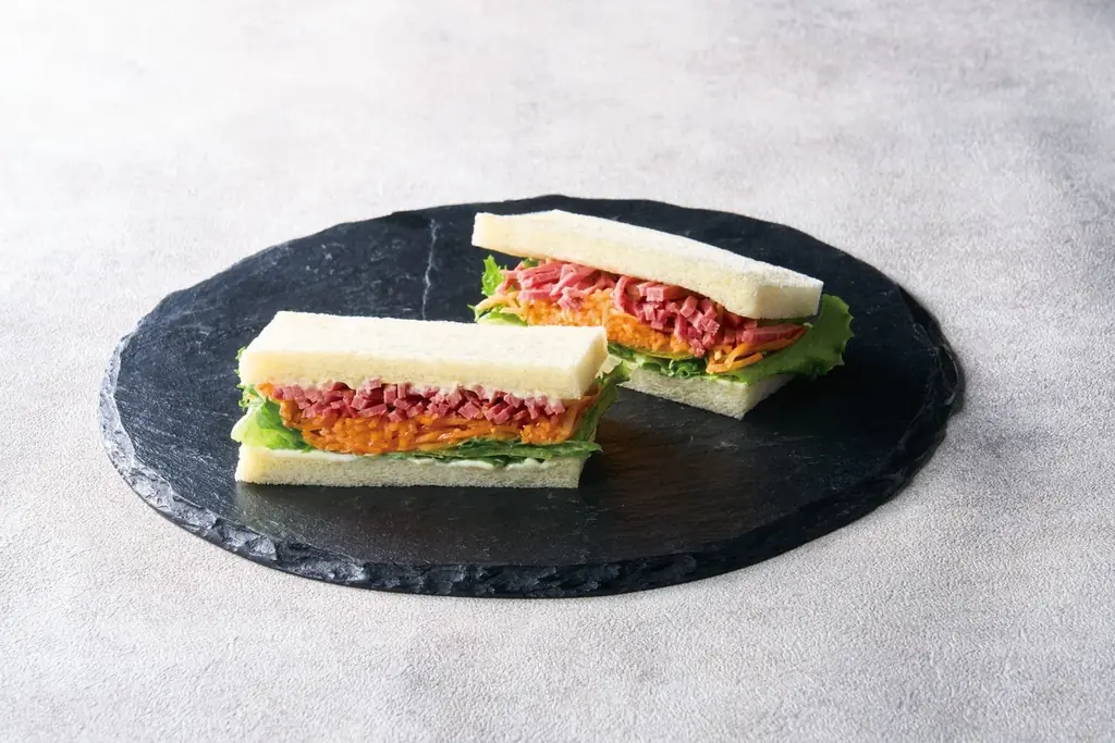 「厚切りロースかつ」は厚切りでジューシーな食べ応えを狙ったご馳走サンドで、食事としての満足度を高める商品です。4ピース表記があるため、シェアやボリューム感を重視した設定であることがうかがえます。