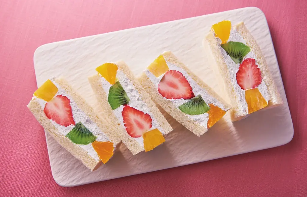 サンドイッチ用の食パンは国産小麦を用いた湯ごね生地でしっとりした食感に仕上げ、フルーツサンドに合わせて甘さは控えめにしています。