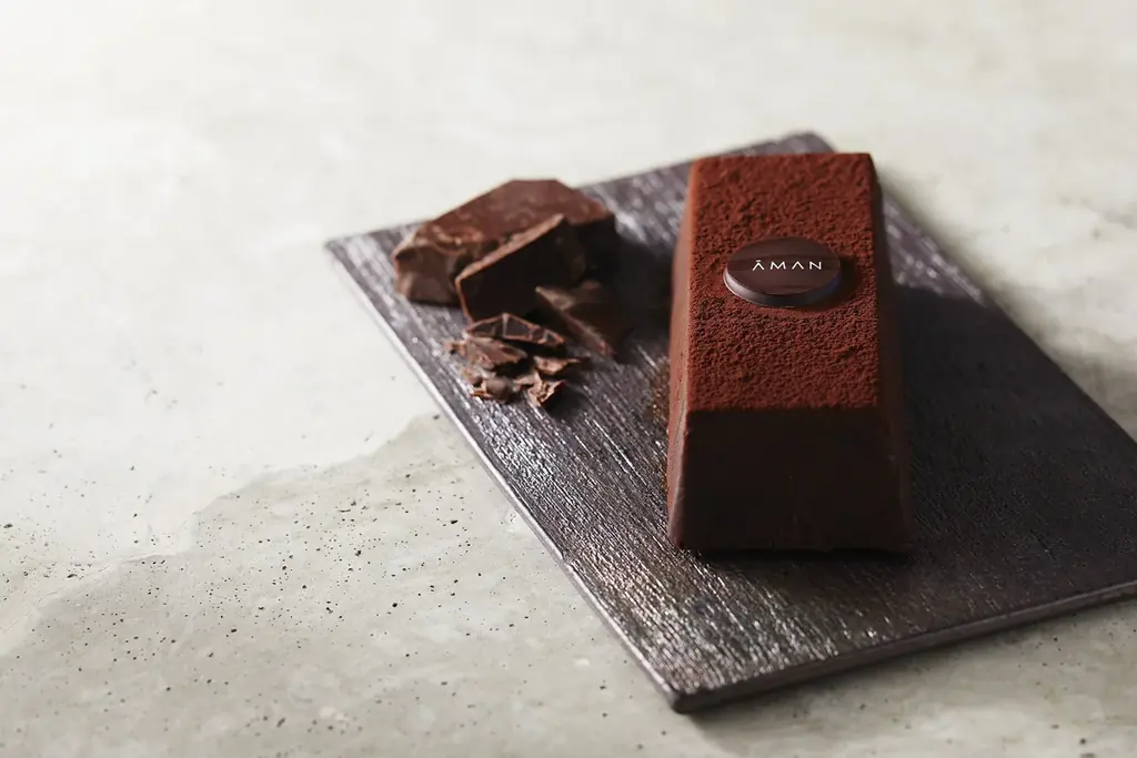 テリーヌショコラ 販売中〜2026年3月14日 4,428円 ラ・パティスリー by アマン東京、アマン東京オンラインショップ インドネシア産チョコレートのオリジナルブレンド。オンラインは冷凍便で配送、冷蔵庫で約12時間解凍し当日中に消費