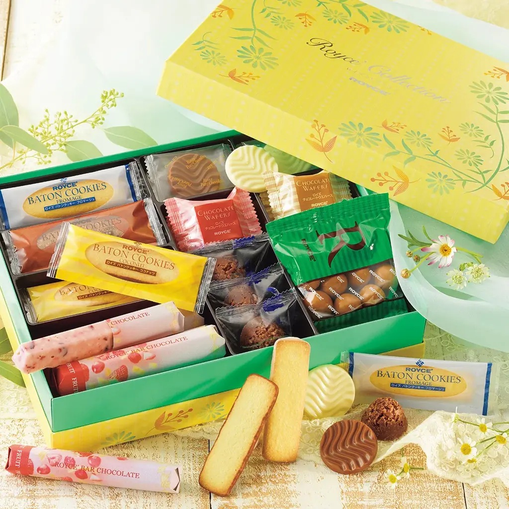 上品な花のモチーフが描かれたボックスに、ロイズラスクやチョコレートウエハースなど4種類の味わいを詰め合わせたプチギフトです。春の挨拶やちょっとした謝意を伝える用途に使いやすい仕様となっています。