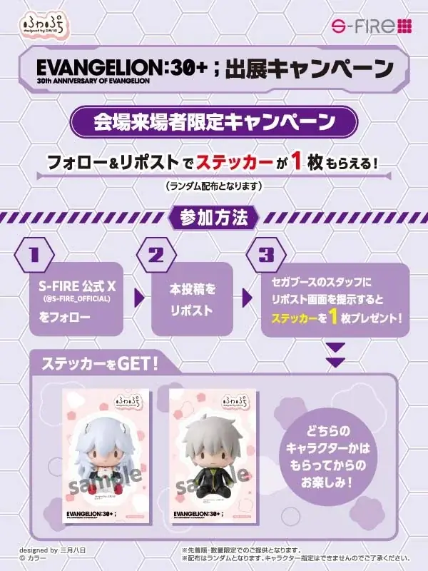| 会場限定プレゼントSNSキャンペーン | 1. S-FIRE公式X(https://x.com/S_FIRE_OFFICIAL)をフォロー 2. キャンペーン投稿をリポスト | ふわぷち デフォルメフィギュア ステッカー(全2種・ランダム配布) | 各日先着順・数量限定、キャラクター指定不可、キャンペーン投稿はイベント当日に発信予定 |