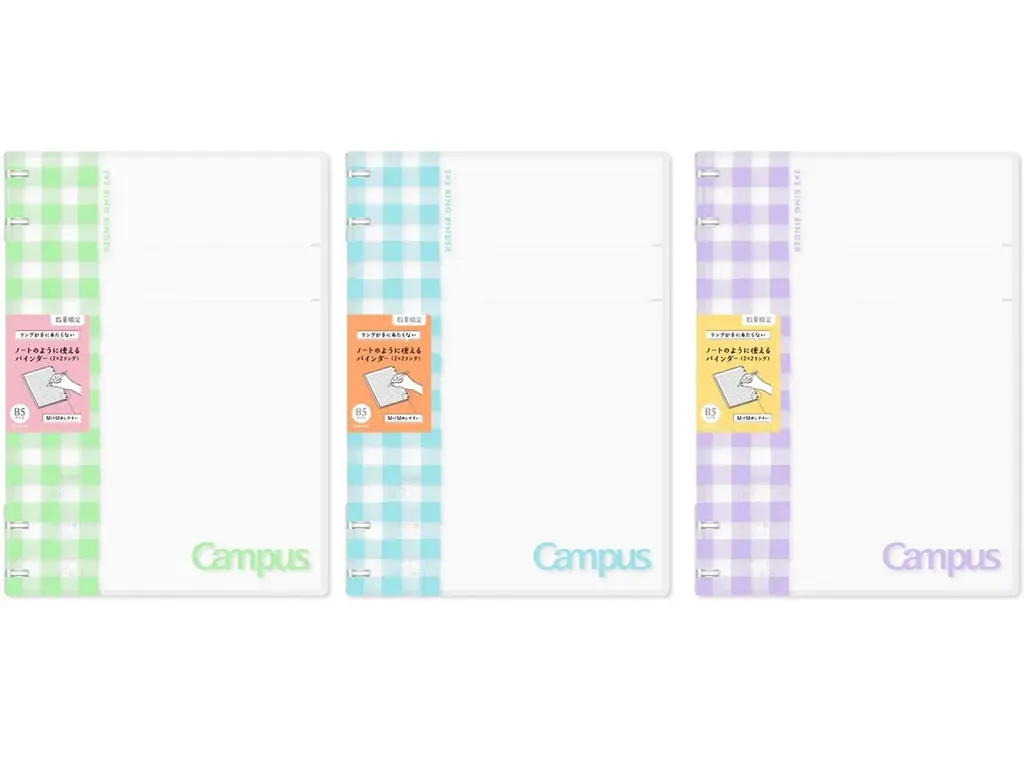 - コクヨ キャンパス ノートのように使えるバインダー(B5)(イオン限定カラー): リングが上下に分かれる設計で書きやすく、薄く軽いノート感覚のルーズリーフバインダー。価格は本体698円(税込767.80円※3)。カラーはグリーン、ブルー、パープル。