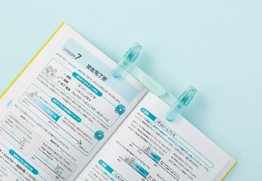 - コクヨ キャンパス ペンのように持ち運べる ブッククリップ: ペン型に畳めるブッククリップ。左右のクリップが独立して動くため異なる厚さにフィット。価格本体498円(税込547.80円※3)。カラーはグリーン、パープル。
