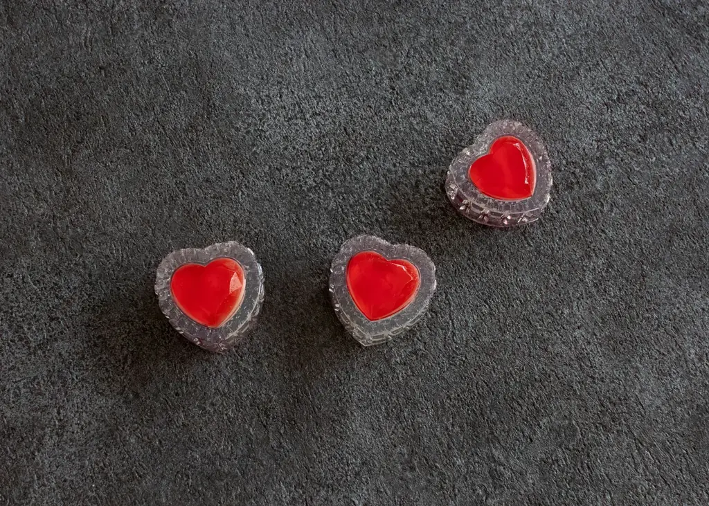 「秘心」は一つひとつがハート型のクリスタル構造を持つ小ぶりな菓子で、サイズは42mm×42mm×24mmと明記されています。個別包装で1個入り、販売価格は税込450円です。限定数は合計120個と非常に限られているため、予約と当日の受け取り方法に関する情報が重要となります。