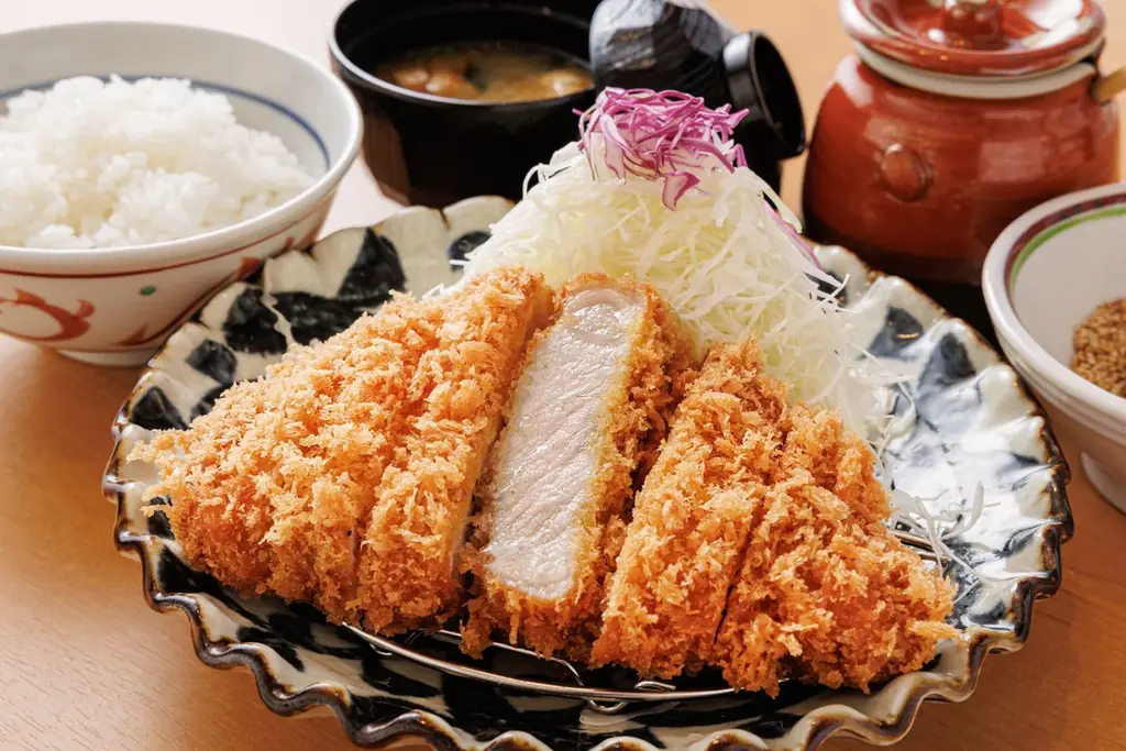 とんかつは注文後に一枚ずつ揚げるため、揚げたてで提供されます。ソースはテーブルにあるすり鉢の胡麻をたっぷりと合わせ、自分好みにソースを絡めて楽しむ食べ方が提案されています。