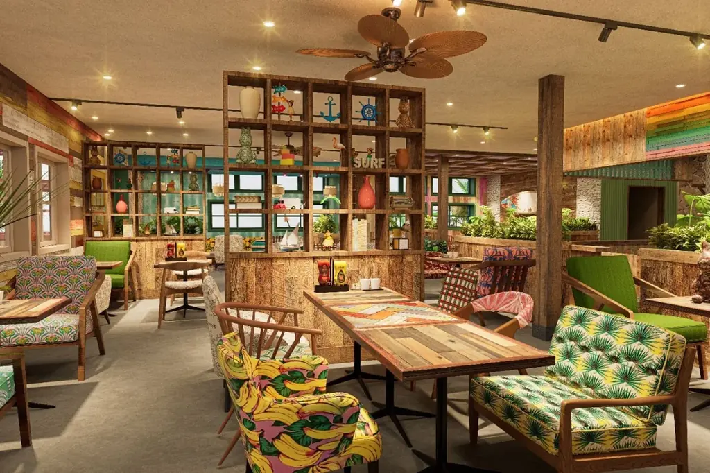 外観にはペインティングアーティストLOOSEMAN氏の手掛ける壁画が各所に施され、明るいハワイの雰囲気を外観から伝えるデザインが導入されます。店内はハワイのローカルのリビングをイメージしたインテリアで構成され、カラフルな雑貨やサーフボード、遊び心のある家具が配置される予定です。