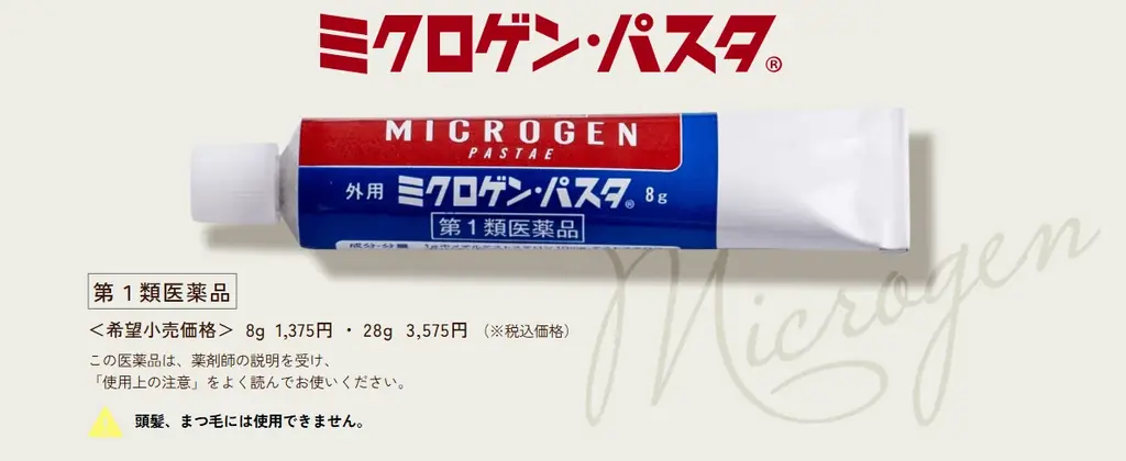| 対象商品(関連) | ミクロゲン・パスタ(第1類医薬品) — まゆ毛、ヒゲ、その他体毛の発毛・育毛用クリーム(頭髪・まつ毛には使用不可) |