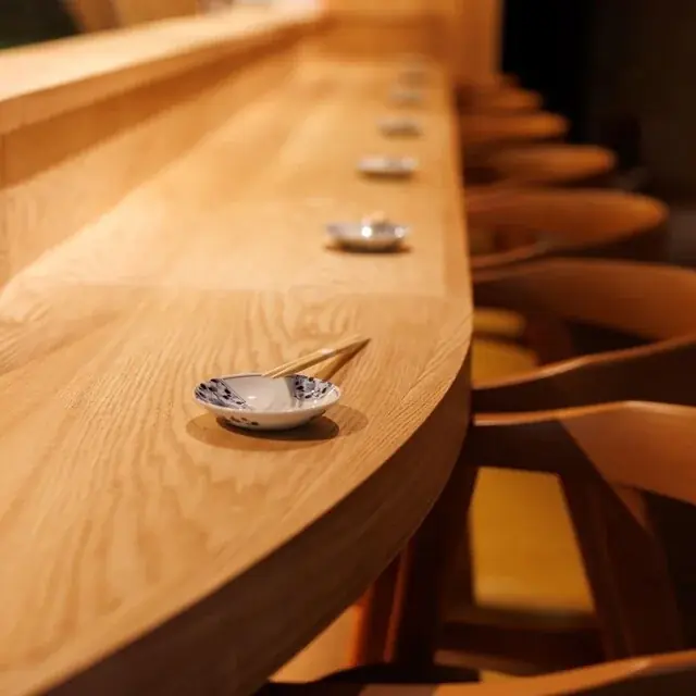 酢には愛媛県産の赤酢を使用しており、10年熟成の赤酢がシャリに与える鋭い酸味と深いコクを特徴としています。また、シャリに合う特製の煮切り醤油を用いることで、ネタとシャリの相乗効果を演出しています。わさびは提供直前にすりおろす国産の本わさびを使用し、香りを重視しています。
