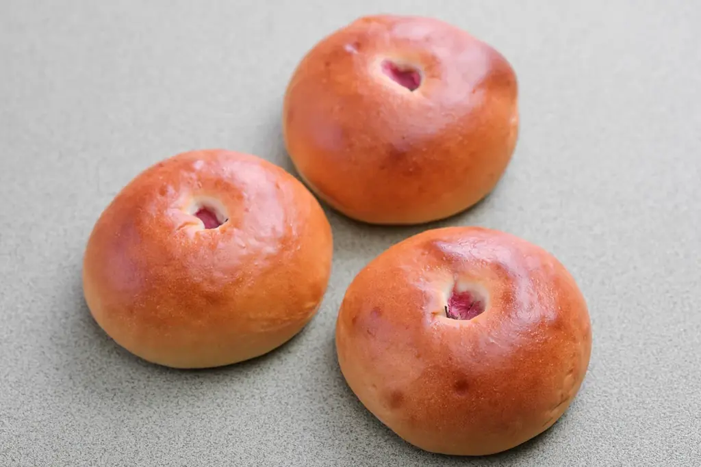 • 桜あんぱん 300円 : 桜風味のこしあんを包んだあんぱん。桜の花の塩漬けがアクセント