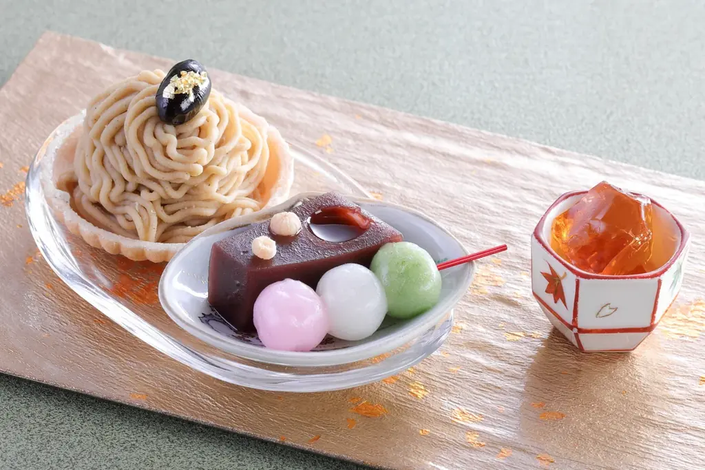 具体的なメニューは以下の通りです。ドリンクは抹茶や黒豆茶など和スイーツに合わせた日本茶各種、ノンアルコールのウェルカムドリンクも用意されます。