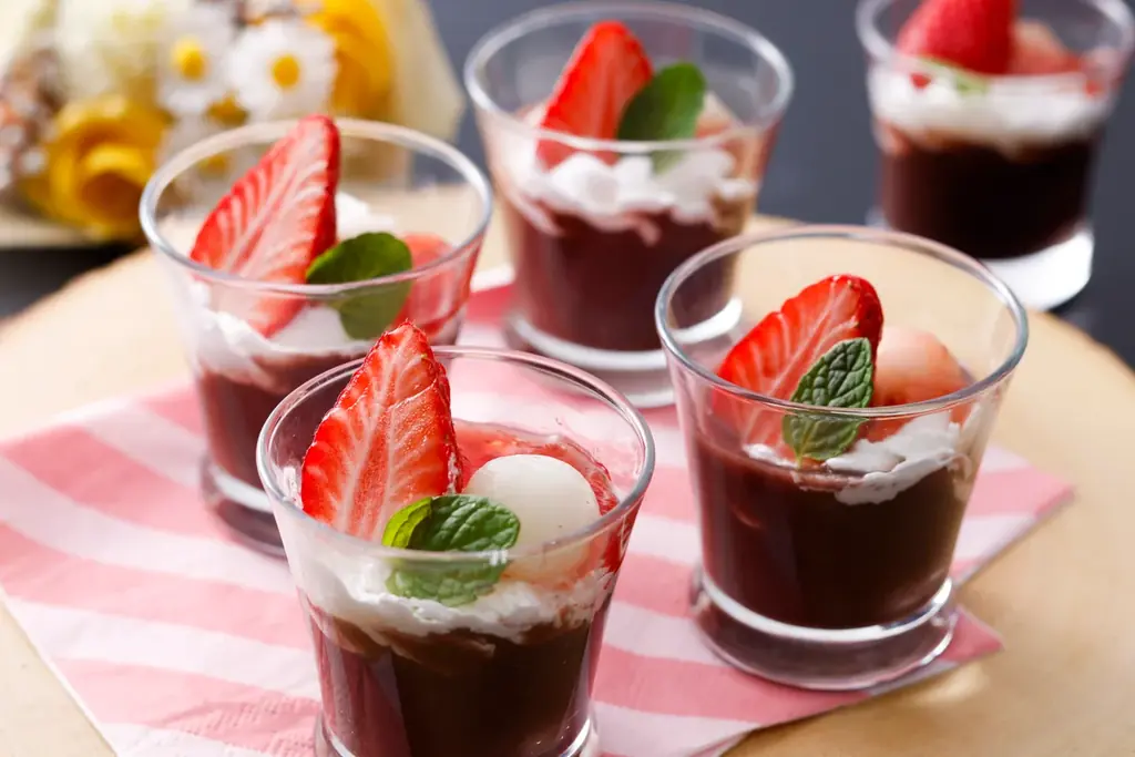 - 彩り冷やしぜんざい:小豆と白玉、季節のフルーツを組み合わせた冷やしぜんざい。苺の酸味を添えた春仕立てで、ひんやりと軽やかな甘さが楽しめます。