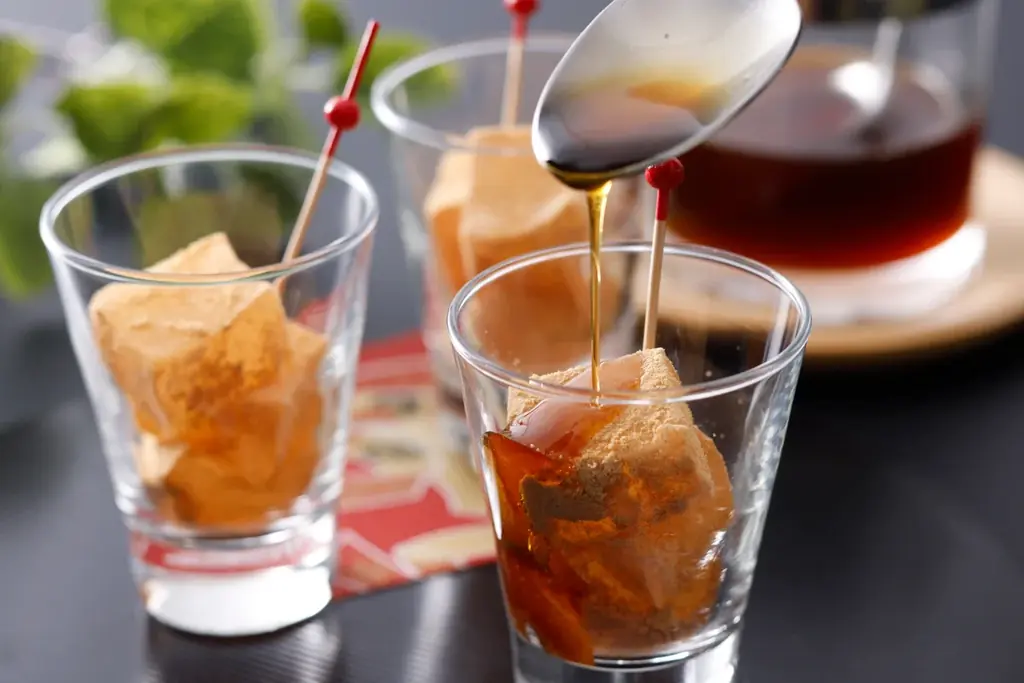 - 高知の伝統甘味 白玉糖黒蜜の贅沢わらび餅:芸西村での伝統的な製法で作られる白玉糖を使用した特製黒蜜をたっぷりかけるわらび餅。雑味のないまろやかな甘みがわらび餅のとろりとした食感を引き立てます。