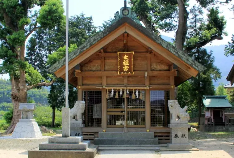 太祖神社は伊弉諾尊(いざなぎのみこと)を主神とする歴史ある神社で、若杉山山頂の敷地内に「上宮」が、麓には「下宮」が配されている。地域の人々の祈りが集まる場として古くから続く社である。