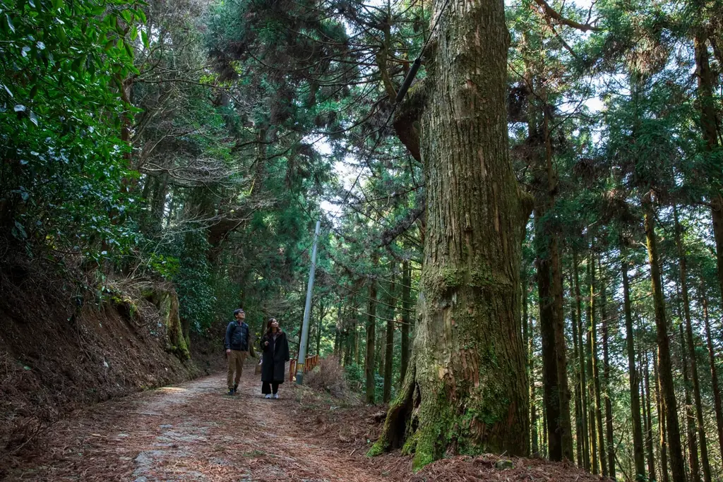 コース近くには幹回り約16m・高さ約40mの巨木「大和の大杉」があり、森の雄大さを体感できる。歩行時間が短く起伏も比較的穏やかなため、幅広い年齢層が自然を感じる導入として利用できる。