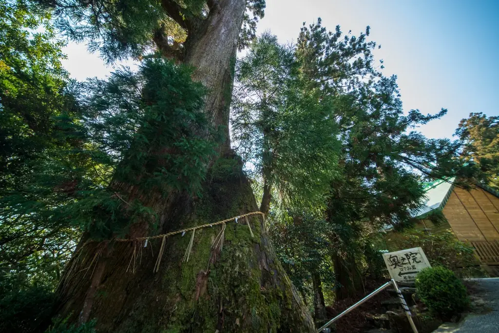 若杉奥之院は山頂近くに位置する真言密教の聖地で、約1200年前に空海が加持修法を行ったとされる場所である。若杉奥之院の最寄りは「遥拝堂駐車場」で、そこからお遍路みちを徒歩約30分で奥之院に到達する。