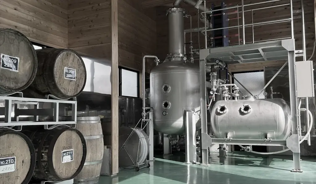 本商品の香りの鍵となるのが、超低温での減圧蒸留です。一般的に低圧蒸留はおおむね40〜55℃で行われることが多いのに対し、VINE-YARD 12では37℃での蒸留を実施しています。この温度設定により熱に弱い香気成分を保護し、ぶどうの〈みずみずしさ〉を残したまま抽出することが可能になっています。