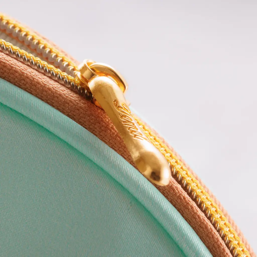 ファスナーのチャームが視覚的なアクセントとなり、デメルのアイコン的要素をさりげなく取り入れた仕様です。ポーチ単体でもコレクション性があり、ギフト用途にも配慮された作りになっています。