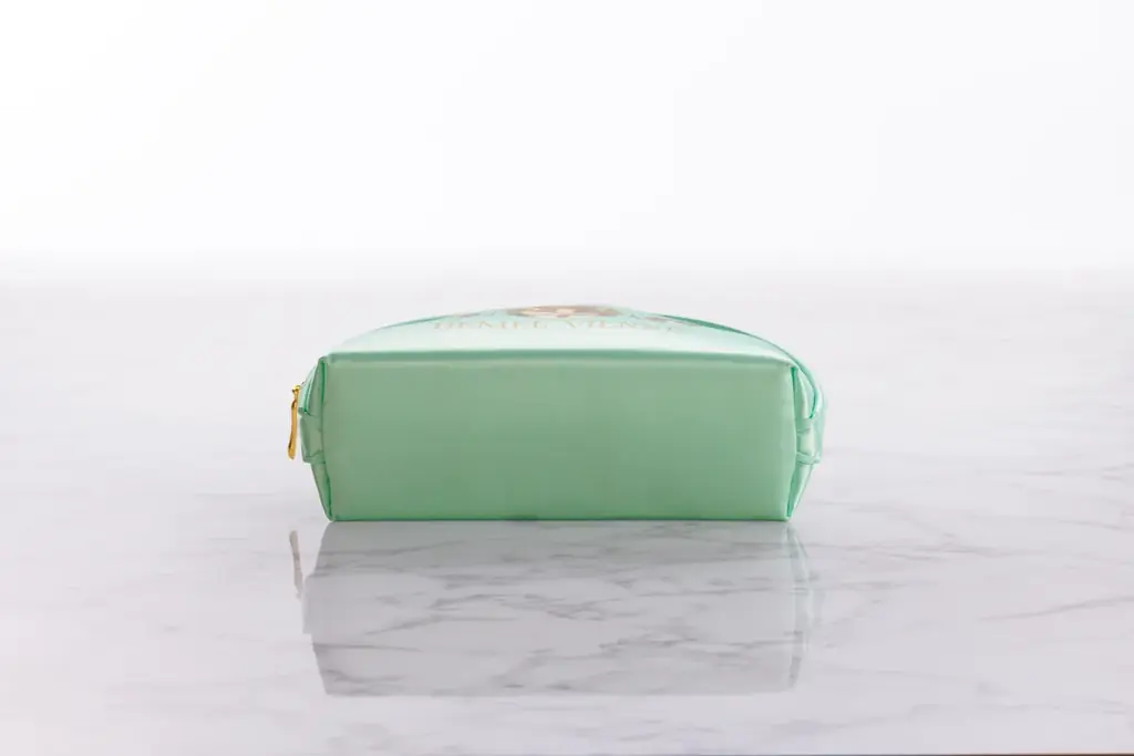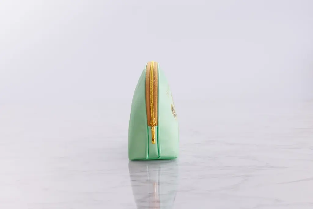 限定ポーチは半円形に近いフォルムで、日常的に使いやすいサイズ感に設計されています。化粧品や小物を整理する用途に適しており、内装や素材の詳細は公表されていませんが、外観はデメルのパッケージモチーフを活かしたデザインとのことです。