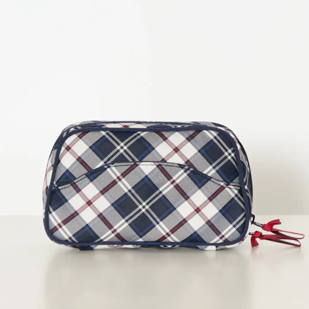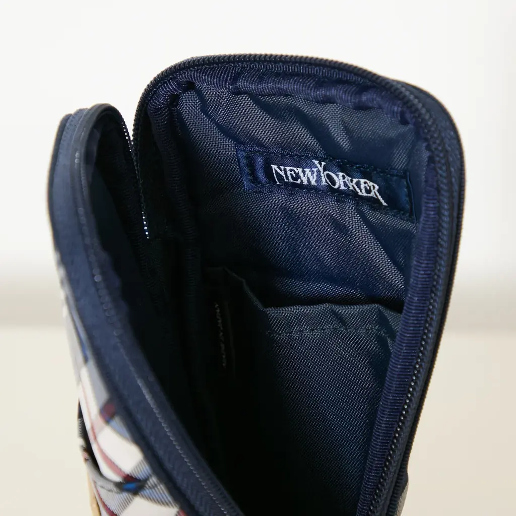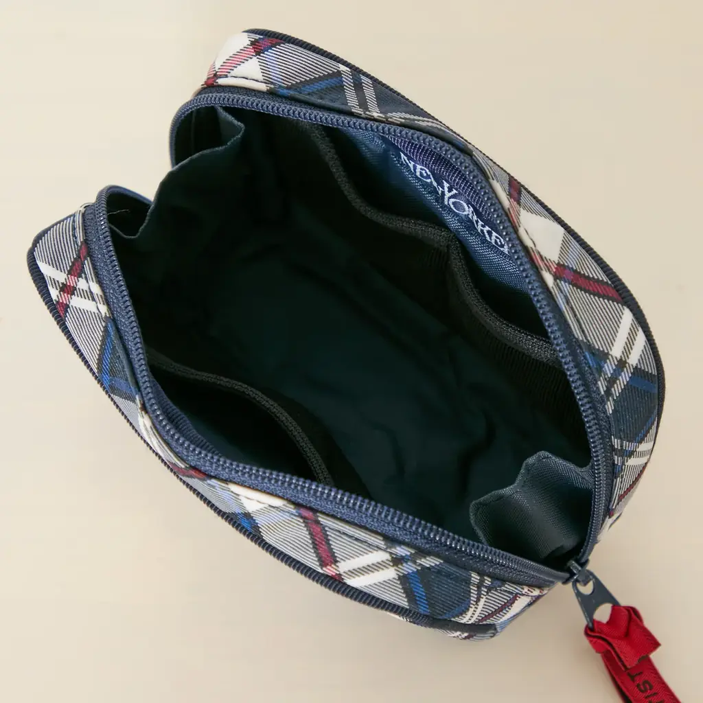 ころんとした角が印象的なマチ付きスクエアポーチです。表地のニューヨーカータータンに弱撥水加工を施しており、汚れが付きにくく軽く水拭きできる仕様です。内装はNEWYORKERオリジナルの設計で、両側にゴム入りポケットを配置し、コスメ類やガジェット収納に対応します。