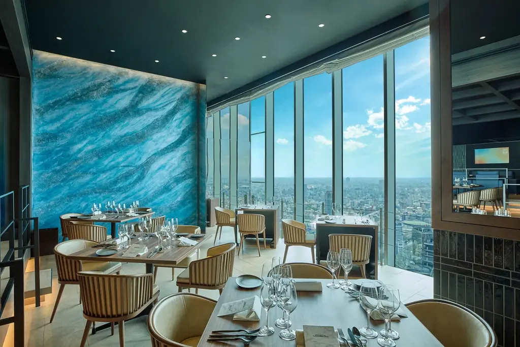 提供場所はミッドランドスクエア41階、地上約200メートルの眺望を楽しめる空間です。ランチからディナーまで利用可能な時間帯にあわせて、ゆったりと苺の個性を食べ比べられる構成となっています。