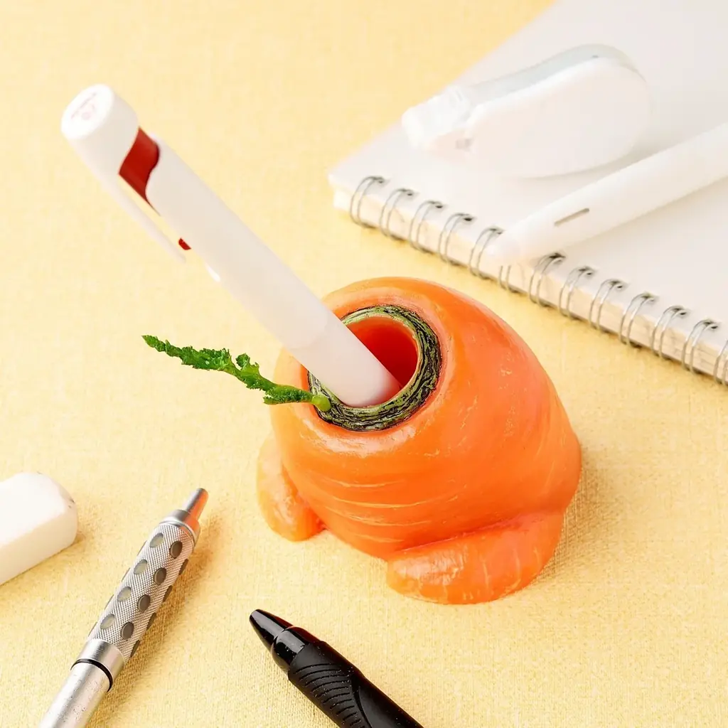 岩崎総合研究所からは「這い上がりたい にんじんペン立て」が登場します。昨年の大根に続くシリーズとして、人参のシルエットや小さな葉の表現などで“人参らしさ”を追求しました。
