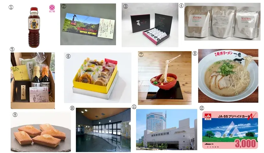 • 特製だし醤油「笑油」2本セット(10名)ほか、ロープウェイ往復券、瓦クランチチョコ、ギフトカード等(合計12賞品群)