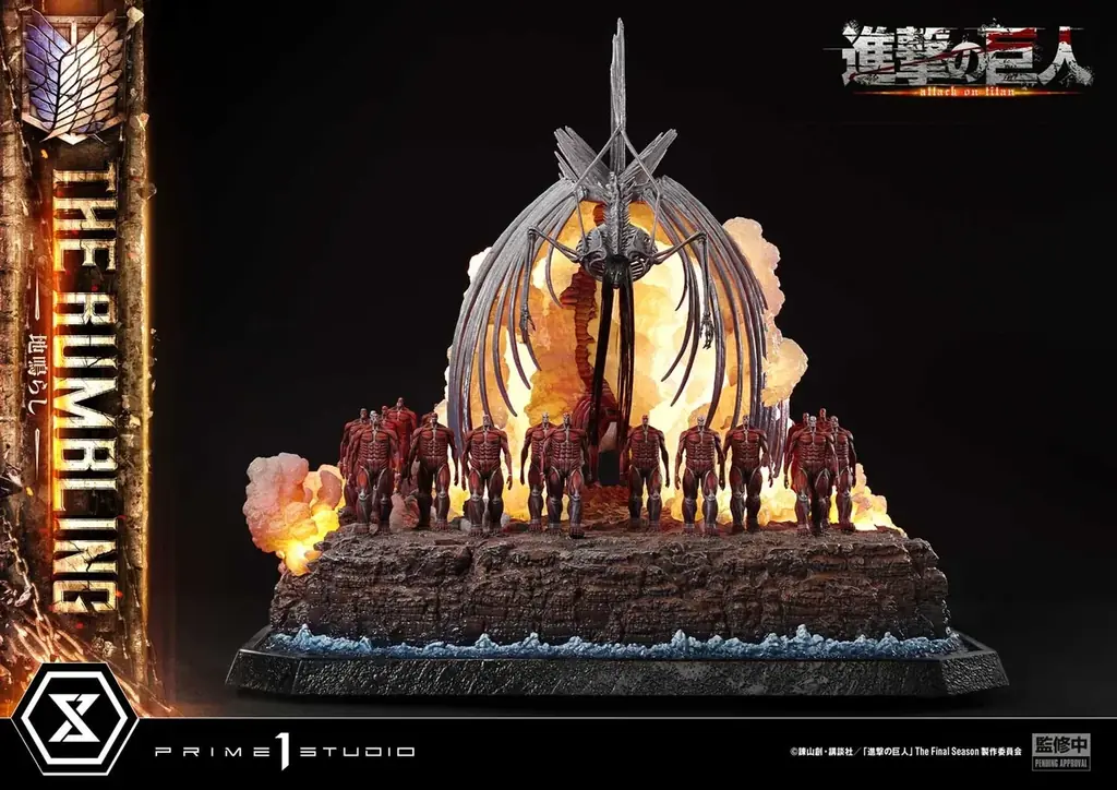 TVアニメ『進撃の巨人』の最終局面として描かれた「地鳴らし」を、プライム1スタジオのハイエンドブランド「PRIME 1 STATUE」によるアルティメットジオラママスターラインがノンスケールのジオラマとして具現化しました。立ち上る紅蓮の蒸気、鳴り止まない巨大な足音、そして終末へ向かう行進の圧倒的な存在感を、視覚的・造形的に表現した作品です。