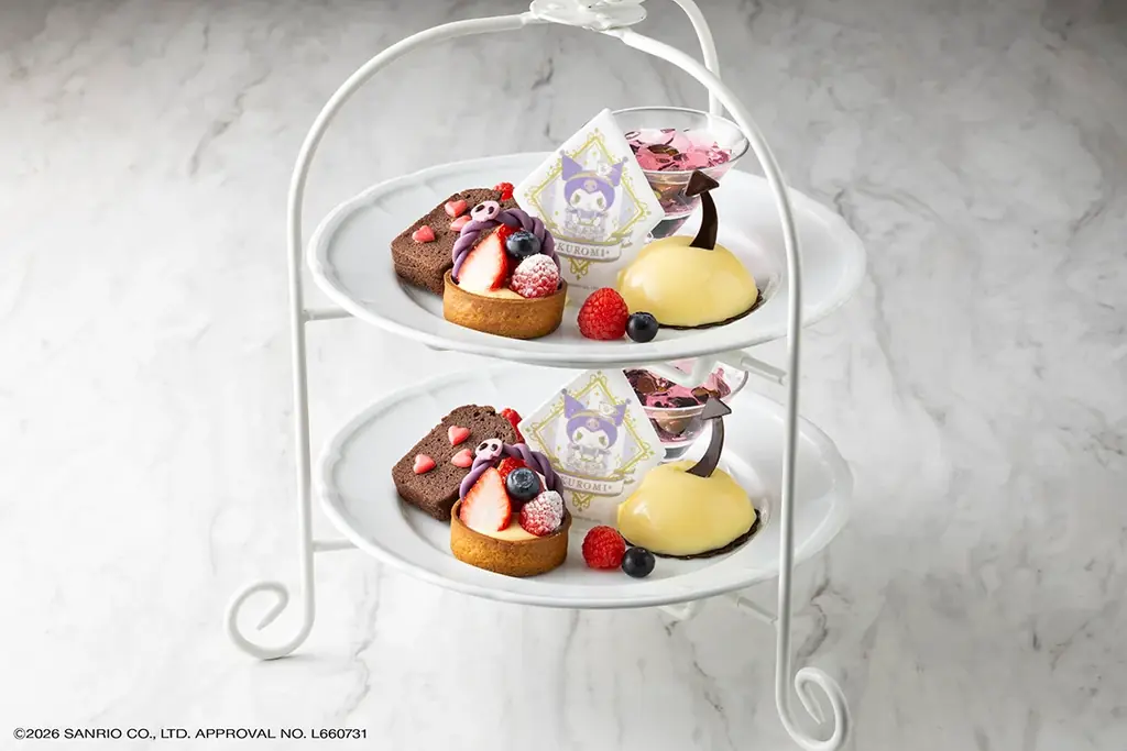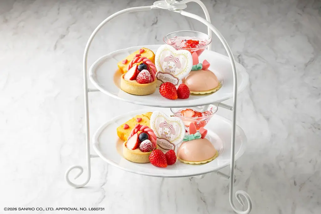 本プランは客室(マイメロディルーム/クロミルーム)に設置されたフォトスポットやラウンジスペースなどでのティータイムを想定しており、写真映えするプレゼンテーションも意図された内容です。併せてホテル限定のオリジナルグッズ(ぬいぐるみ・ヘアターバン・ポーチ)が宿泊者お一人様につき1セット付属します。