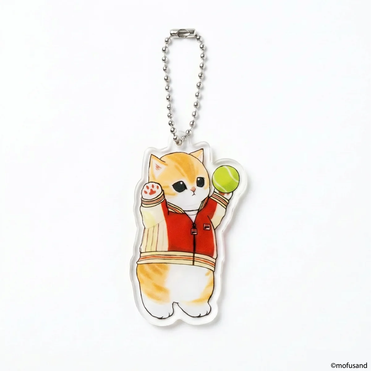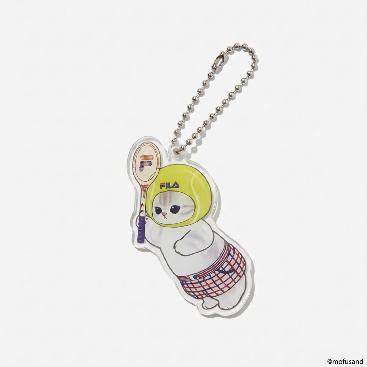今回のラインナップの象徴となるのは、伝説的テニスプレイヤー「ビョルン・ボルグ」が着用していた通称ボルグジャケットを身に纏ったにゃんこや、テニスボールを被ったにゃんこといった、遊び心の強いビジュアルです。FILAのテニスヘリテージとmofusandのキュートな表現が融合した、コレクション全体のトーンが明確に打ち出されています。
