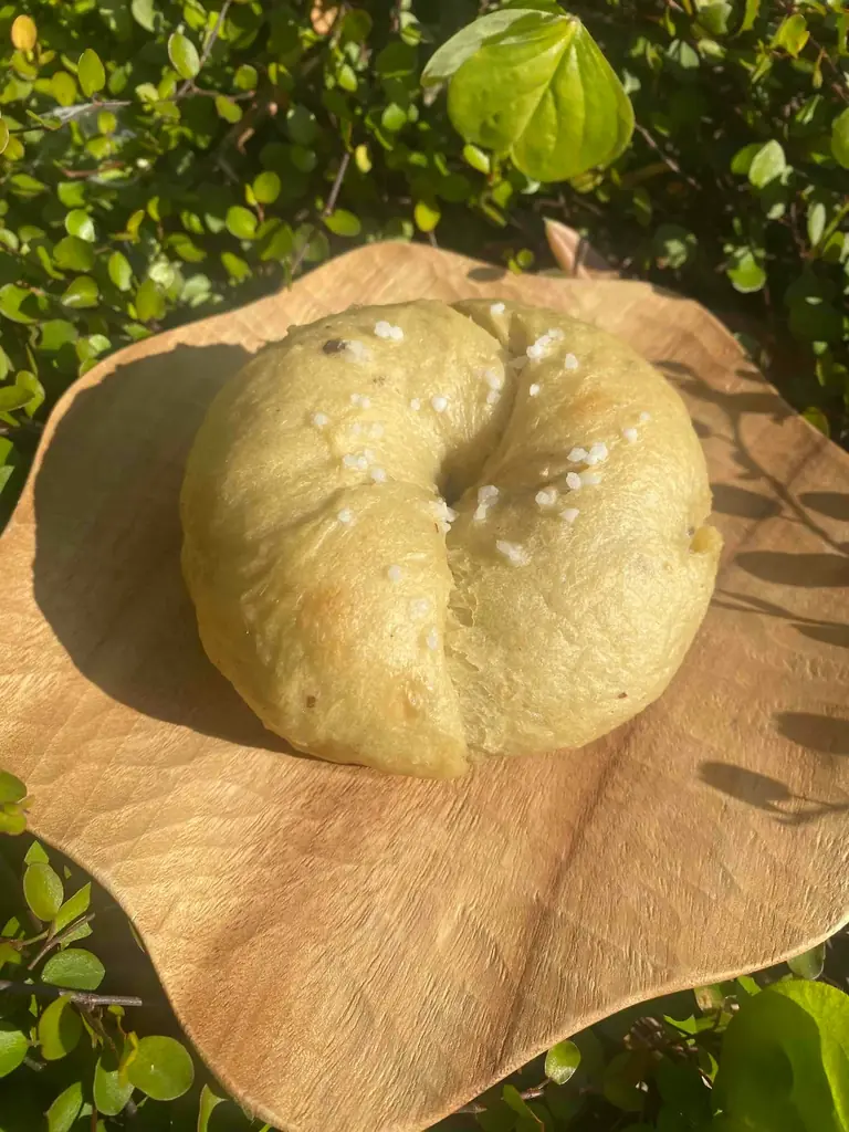 | ベーグル(やきいも塩バター) | 価格:320円(税込)。販売:3月7日(土)11:00〜(完売次第終了)。使用素材:ソラシドエコファーム産さつまいも |